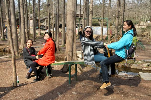 景区内,青青杨柳,潺潺流水,巍巍翠竹,悠悠栈道,老师们穿梭于其中,感受着春天大地的温暖和煦,体悟着同事朋友间的殷殷情谊;荡漾的秋天,欢快的跷跷板,儿时的小游戏,老师们游玩于其中,欢乐里遗忘了年华,时光仿佛又回到青春年少时。