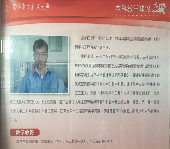 根据教务处日前出炉的“本科教学建设先锋”,全校共10名老师、1个教学团队获此荣誉称号,电子游戏试玩 2名老师入选,入选人数位列全校之首,分别为材料科学与工程系占小红副教授、核科学与工程系常树全副教授。在此向两位老师表示祝贺,并希望电子游戏试玩 老师能够更加注重本科教学,以“育人为本,教学为要”,为提高人才培养质量贡献力量。