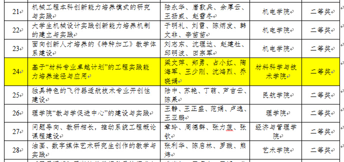 《基于“材料专业卓越计划”的工程实践能力培养途径与应用》荣获二等奖。