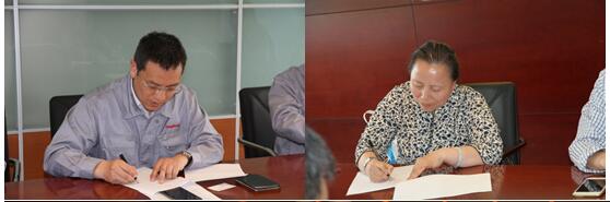 梁文萍与向建华分别代表双方签订了《材料学院与江苏丰东热技术股份有限公司共建学生实习实践基地协议》。