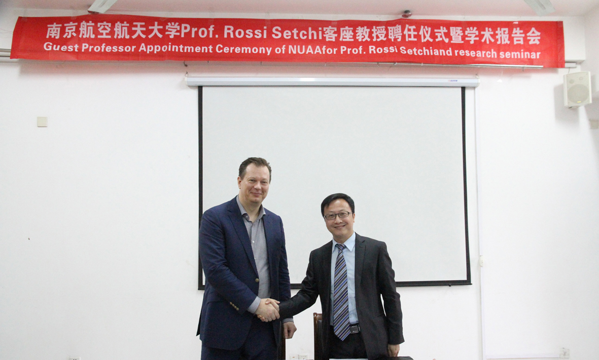 上午十点,卡迪夫大学国际事务处主任Johannes Benedikt教授与我校国际合作处处长赖际舟教授签订了《卡迪夫大学-南京航空航天大学校际合作协议》,为两校未来的深度合作奠定了坚实的基础。签订仪式后,举行了Rossi Setchi教授南航客座教授聘任仪式,赖际舟教授首先对Rossi Setchi教授的到来表示热烈欢迎,向我校师生介绍了Setchi教授的学术经历和学术成就,为Setchi教授颁发了我校兼职教授聘任证书并佩戴了南航校徽。Rossi Setchi教授表达了对南航的感谢之情,同时希望进一步拓展两校在增材制造及智能制造、先进材料成型加工、机器人、无损检测等学科领域的深入合作。电子游戏试玩 院长姚正军教授、党委书记周克印教授、院长助理顾冬冬教授、材料系副主任占小红副教授等出席了本次校际合作协议签署仪式及客座教授授予仪式。