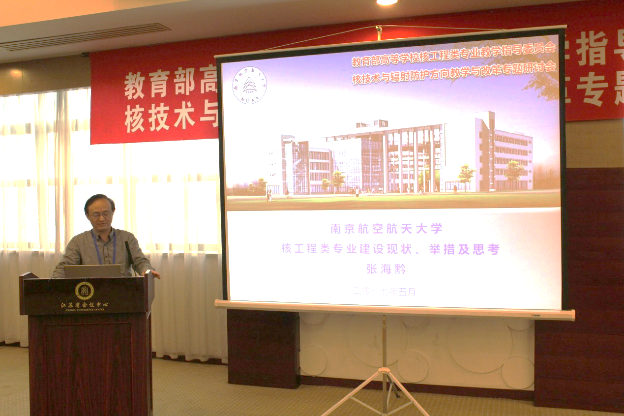 四川大学核科学技术学院院长杨朝文教授、东华理工大学核科学与工程学院院长刘义保教授、南华大学核学院院长肖德涛教授、清华大学工程物理系曾志教授和张智教授、南京理工大学核环境系系主任杨毅教授等分别围绕核技术专业课程设置、地方行业院校核专业人才培养、辐射防护专业发展、精品课程建设、实践教学等主题作了大会报告。核工程类专业教指委委员、我校核专业负责人张海黔教授作了题为“南航核专业建设现状、举措及思考”的大会报告,介绍了我校核专业的发展历程及建设现状。