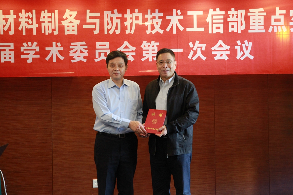 会上,聂宏校长宣读了《工业和信息化部办公厅关于同意部重点实验室主任及学术委员会主任的函》、《南京航空航天大学关于聘任工业和信息化部重点实验室副主任的通知》以及实验室学术委员会名单,并向到会的学术委员会委员颁发了聘书。