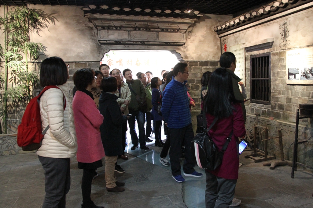 在高淳武家嘴史馆,所有学院领导干部和教职工通过实地参观“昔日的小渔村”、“今日的首富村”、“启航的武家嘴”、“奋进的党组织”、“多元的新格局”、“希望的新航程”等6个展区,详细阅读史馆内的丰富史料,浏览历史文物,亲眼目睹50多件实物、36块展板、198张图片,深刻学习了农村干部群众解放思想、艰苦奋斗、开拓进取的实践探索,实地领略了武家嘴人“敢闯、敢干、敢拼,求变、求新、求美”的开拓精神。通过实地参观,学院党员领导干部和教职工深切感受到共产党领导改革开放取得的巨大成就,特别是感受到了十八大以来城乡建设发生的迅猛变化。