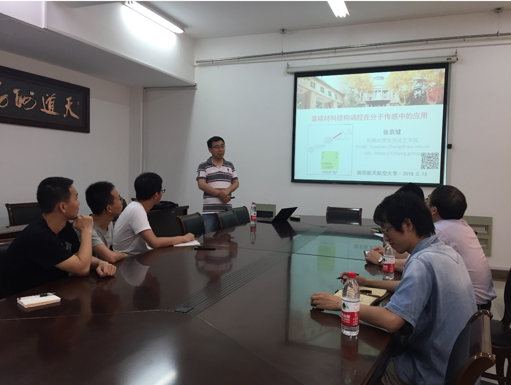 2018年5月16日,东南大学化学化工学院张袁健教授,应我校Azhar Ali Haidry副教授邀请,为我校师生做了题为“氮化碳结构调控在分子发光分析中的应用”的学术报告,报告由材料学院Azhar Ali Haidry副教授主持,共有20余位师生参与聆听了此次报告。