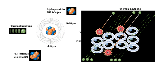 硼中子俘获治疗(BNCT)原理示意图