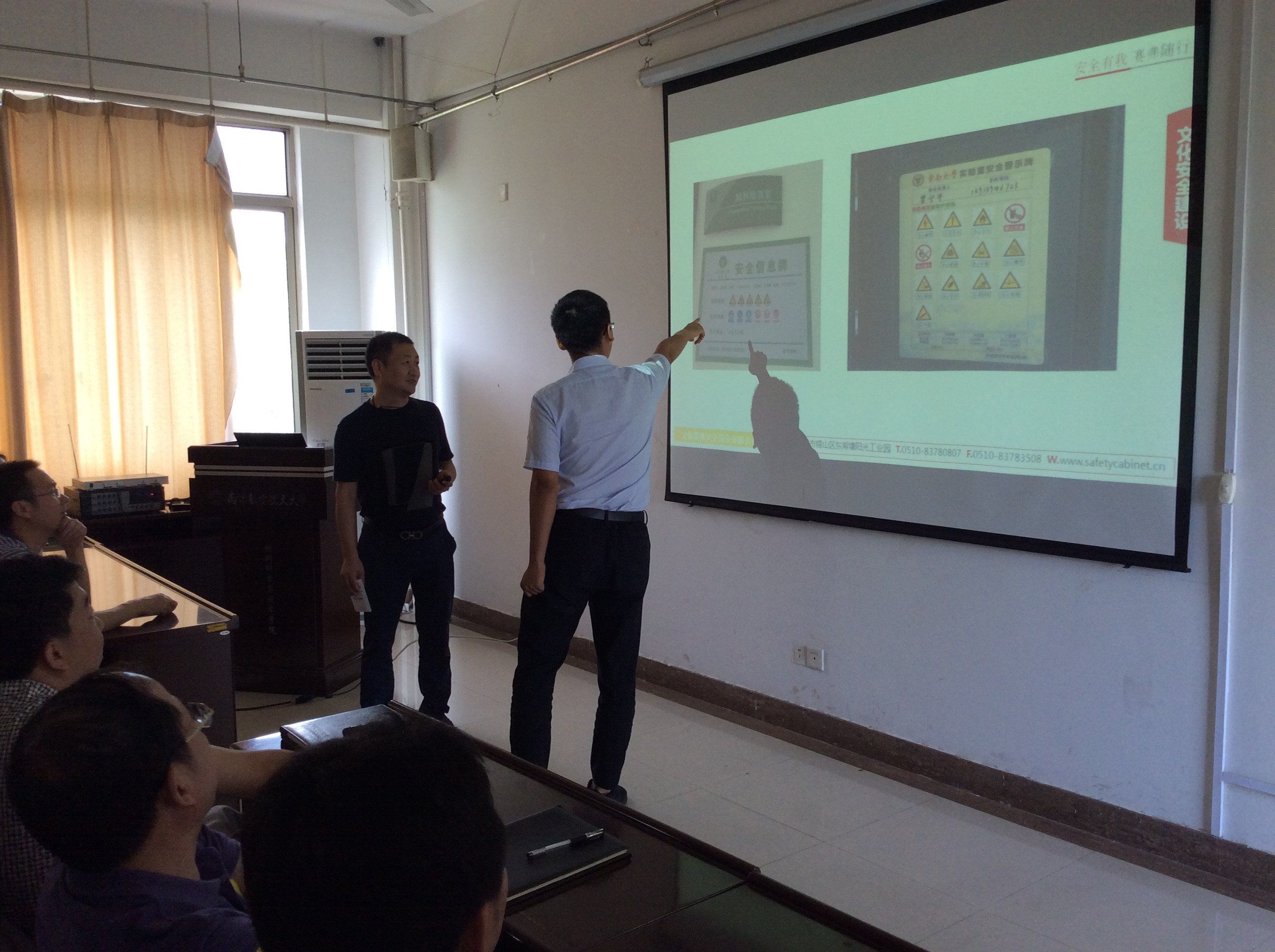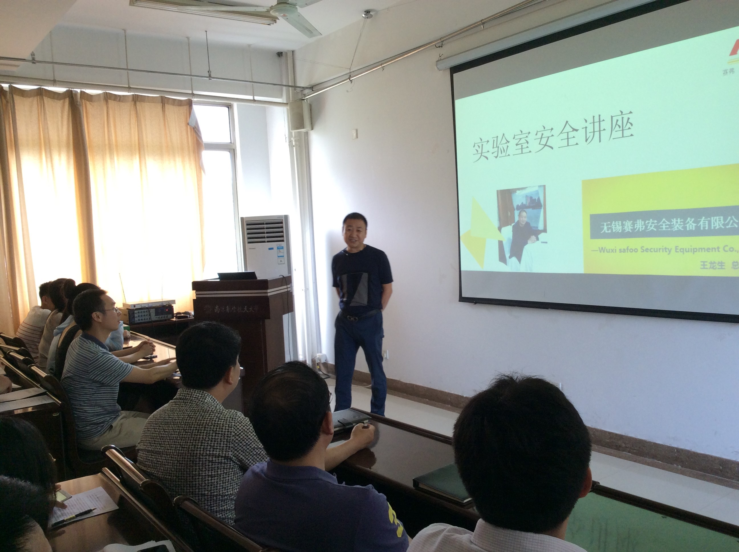 首先,无锡赛弗安全装备有限公司专业培训师结合国内危险化学品事故的典型案例、高校危化品实验室的常见隐患,对危险化学品的安全管理和安全使用知识进行了细致的分析和讲解。
