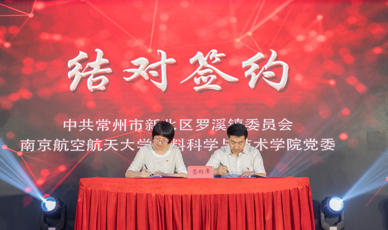 会上,电子游戏试玩 党委书记孙占久和罗溪镇党委书记曹瑜代表南航材料学院与罗溪进行党建结对签约。签约后,双方将通过党建引领,以教育、实训基地建设为切入点,积极探索产学研合作的新路子,探讨人才培养的新方法,提升大学生实践能力,密切校企联系。电子游戏试玩 将在特色党建的引领下,利用学院的学科优势及人才优势,在装备制造、新能源、新材料等多个学科应用领域扎实做好“特色教育资源引入” 、“产学研项目深度合作”、“研究应用型综合人才培育”等工作。电子游戏试玩 学生支部与罗溪中学党支部,电子游戏试玩 教师支部与江苏新泉汽车党支部也分别结对签约。