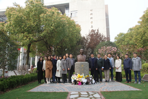 在陈达院士塑像前,学院党政领导班子带领师生党员面向院士塑像肃穆鞠躬,为对我国国防事业倾注毕生心血的陈达院士献花,表达对院士的追思之情。陈达院士一生治学严谨、乐观豁达、团结同志、率先垂范,表现出一名优秀共产党员和著名科学家的高贵品质,他对党和国家的深厚感情、对国防科技和教育事业孜孜以求的诚挚态度,以及他的科学精神和学者风范,永远值得我们学习和敬仰。