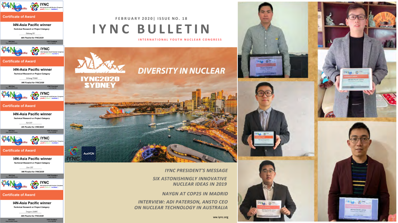 2月初,“Aerospace Energy Star Team”团队收到了3月份在澳大利亚悉尼举办的I4N 2020全球总决赛的参赛邀请,并获得全额差旅资助,但由于COVID-19疫情影响无法前往现场参赛。经过与竞赛组委会的沟通协调,也得到了竞赛组委会的理解和支持,团队最终采取“视频录制、现场播放和线上交流答疑”的方式代表亚太地区参与到了此次I4N 2020全球总决赛中,并与来自其他国家抵达总决赛比赛现场的5支队伍进行了“同台”角逐。虽然“Aerospace Energy Star Team”团队最终没能取得更好的成绩,但值此新冠肺炎疫情期间,南航学子克服困难积极向世界核技术领域专家和科研团队展示自我,在国际化的合作交流中互相学习值得肯定。