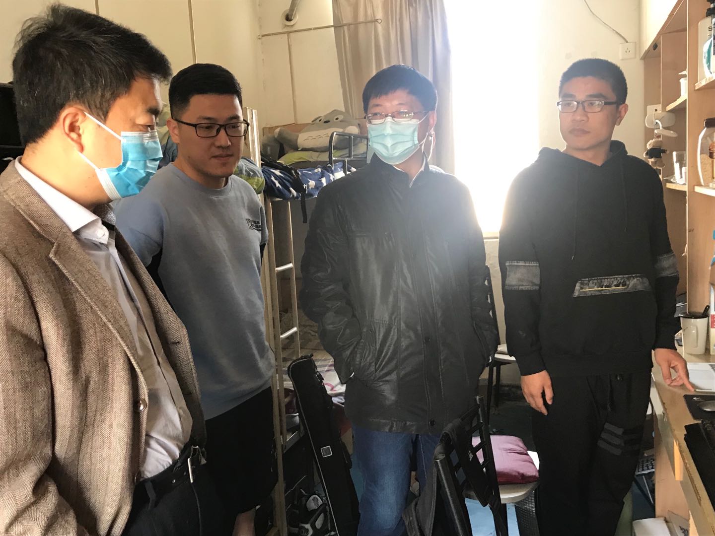 日前,电子游戏试玩 大四毕业班学生已经陆续返校报到,学院高度关注学生返校安全和返校后毕业设计(论文)等学习活动开展情况,4月28日上午,学院党委书记孙占久、院长张校刚、党委副书记许赞及辅导员来到宿舍看望同学们。