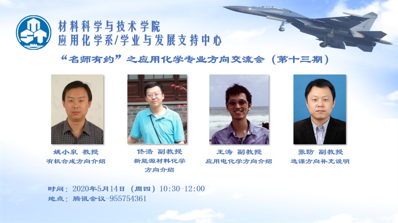 在5月14日举办的应用化学专业方向交流会上,张防老师首先就应用化学专业培养计划、部分主干课程及其应用进行了详细介绍。随后,老师们分别就具体专业方向做了进一步的说明:姚小泉老师介绍了学习有机合成方向应具备的专业基础知识;佟浩老师详细阐述了新能源材料化学方向的发展优势;王涛老师则结合生活中诸多应用,向同学们介绍了应用电化学方向的课程内容。