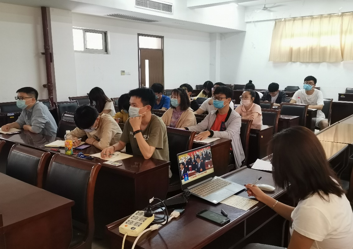 本次两会开幕期间,我们支部组织了观看直播,全体党员、发展对象、积极分子一同学习了李克强总理所作的政府工作报告。本次报告突出了以人民为中心的发展思想。虽然今年疫情严重影响了世界经济的发展,但在党领导下的政府推出“六稳六保”的有力举措,保证国民经济平稳运行。作为一名党员、一名研究生党支部书记,在今后的学习生活中要继续践行习近平新时代中国特色社会主义思想,以全国“两会”精神和党的十九届四中全会精神为引领,不负韶华,奋力拼搏,凝心聚力团结党员群众,争创一流,敢站排头。