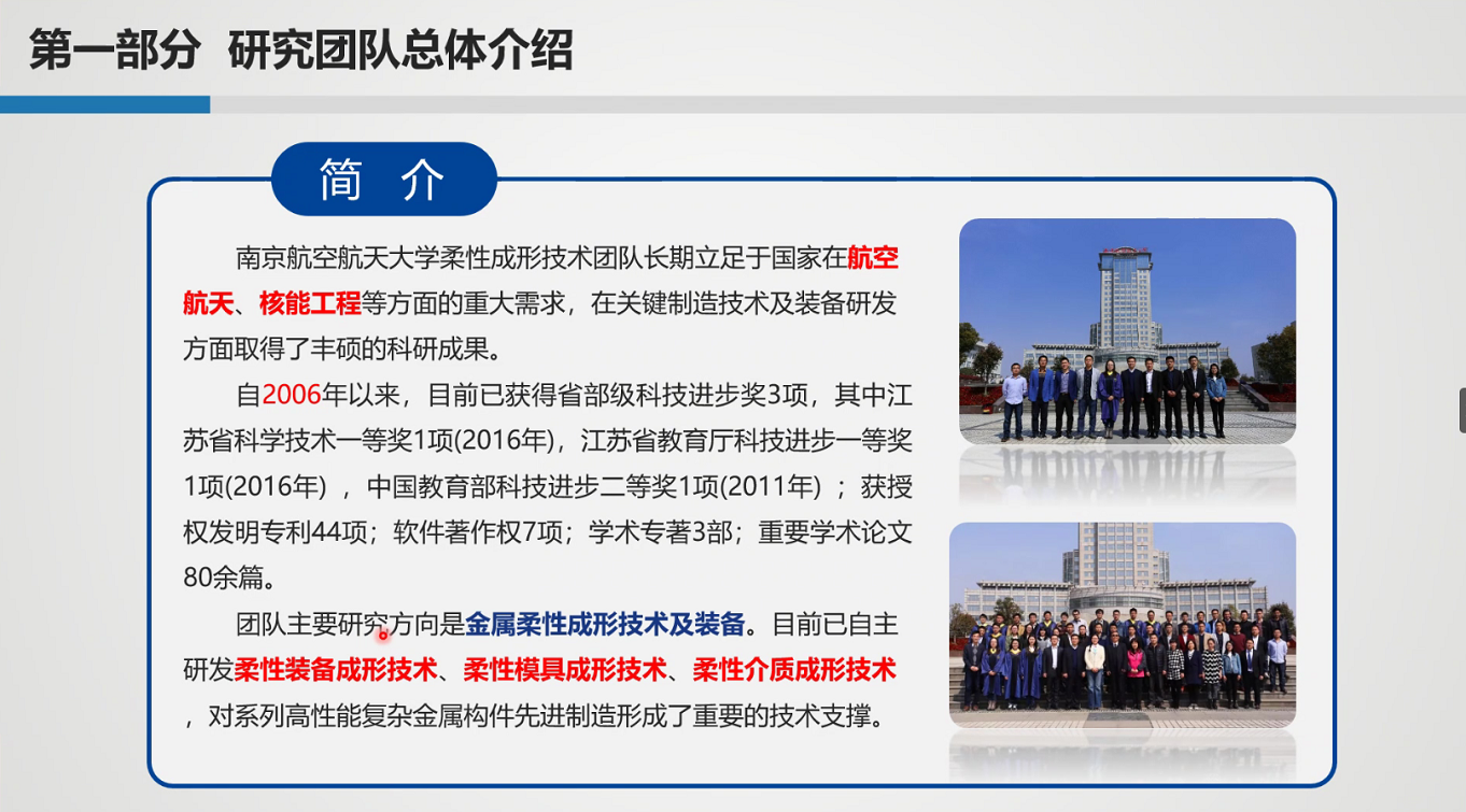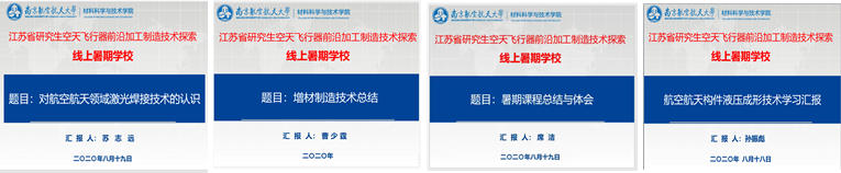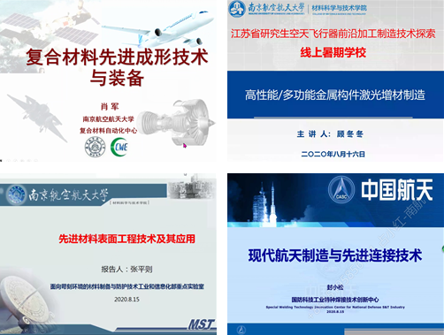 本次线上暑期学校涉及五项培训内容,包括特色专业课程、学科前沿讲座、学术报告、研究生学术交流、线上实验室参观等。通过“空天飞行器关键构件柔性制造”和“空天飞行器复杂构件增材制造”两门特色专业课的学习,学员们对空天飞行器前沿加工制造技术有了更深刻地认识和了解。