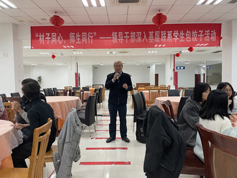 “来到南航学业和生活上还适应么”、“大家平时都喜欢到哪个食堂吃饭呢”、“经常点外卖吗?要注意饮食健康安全”、“实验进展情况和课业压力怎么样”……领导老师一边与同学们包饺子,一边与大家话家常,仔细询问了大家的学习和日常生活情况,并教导同学们要勤学习、会生活。