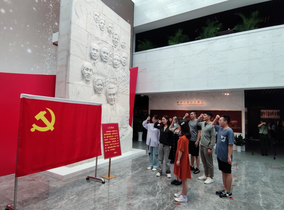 在纪念馆大厅支部成员们追忆了伟人事迹与风范,并面向鲜红党旗重温入党誓词,回想加入中国共产党的初心,通过此次纪念馆参观学习,我们感受到了革命前辈们强烈的爱国主义精神,革命成功路上他们努力的一点一滴,深感我们今天美好生活的来之不易。未来道路上,我们更应该“不忘初心,牢记使命”,树立“为中华之崛起而读书、为中华之强盛而读书”的坚定信念,永远保持艰苦奋斗的本色。