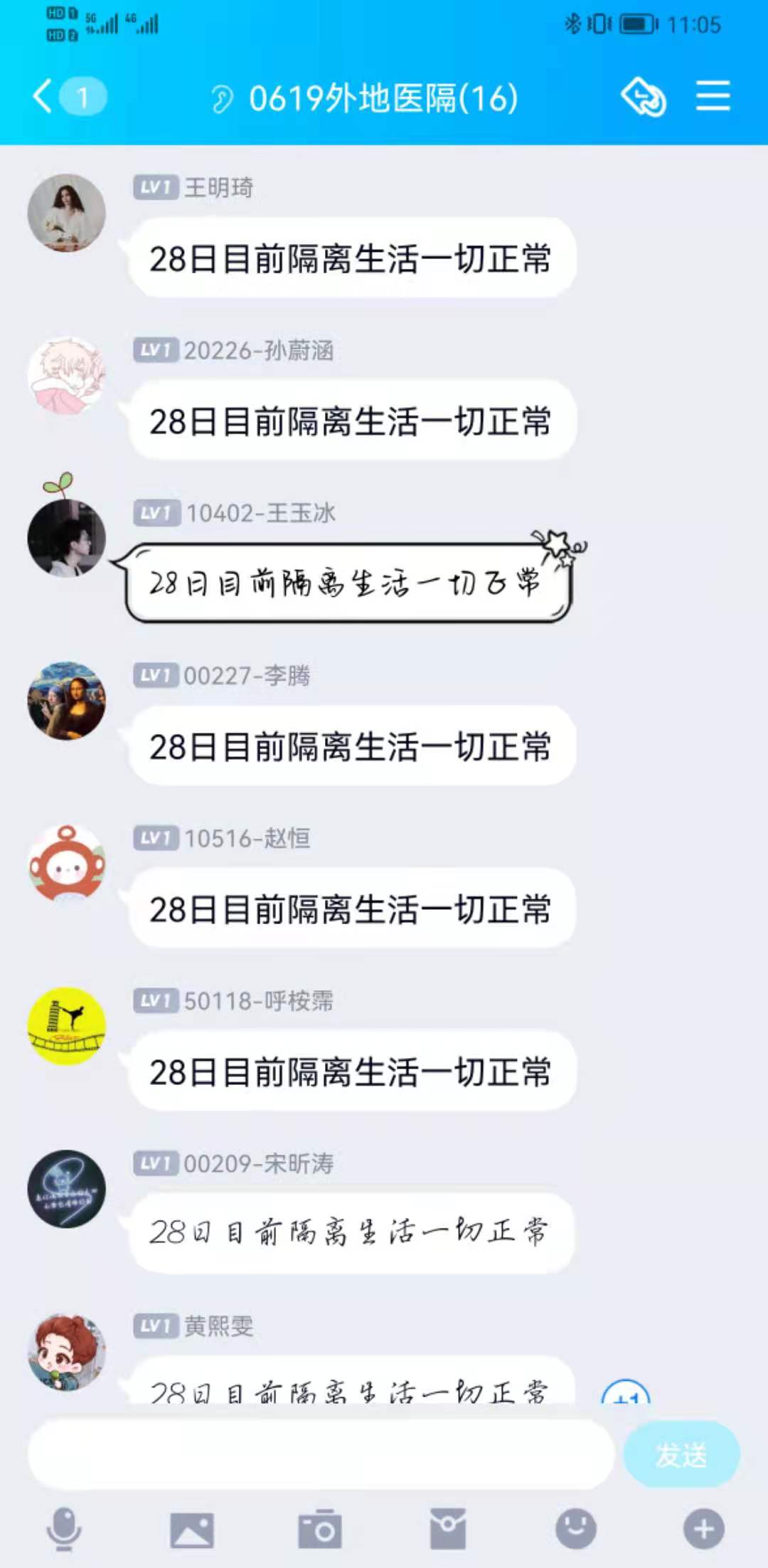 在这场特殊的战斗中,辅导员们第一时间进入“战时状态”,集中研讨学校发布的每一份政策文件,圈划重点、剖析要求,将与学生相关的部分重点消化,对防疫政策首先做到自我吃透,再通过“政策要点+解读劝导”的方式精准传达给学生。每日保证学院1632人全员打卡,认真筛查、耐心比对打卡信息,时刻关心着隔离学生、外地实习实践学生、留校学生、受灾学生等各类学生的安危,做到了各类学生群体底数清、情况明。在外地参加暑期企业实习处于隔离期的辅导员张进鹏,与隔离中的学生们感同身受,一个不落下,每天与他们电话联系、视频连线,想学生所想、急学生所需,并通过在校人员给隔离学生送去了水果、牛奶等慰问大礼包,对学生的关心关爱更及时、更贴心、更温暖。
