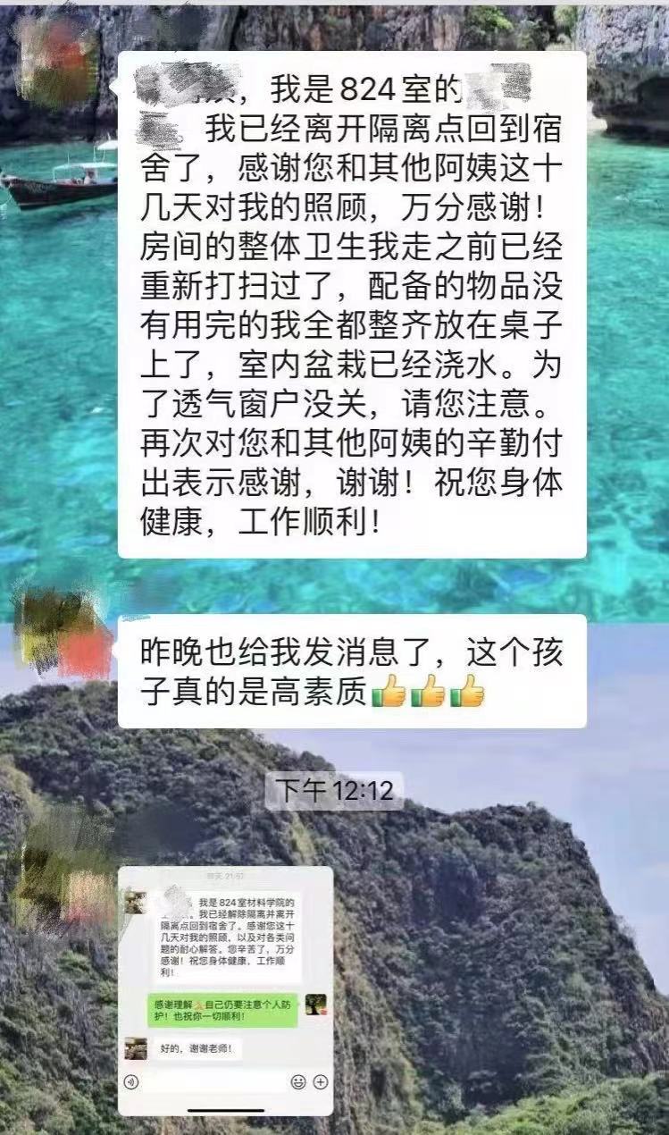 电子游戏试玩 博士研究生王飞云解除隔离当天,他的一条微信引起了老师们的注意,离开集中隔离点时他选择了一声感谢并把房间打扫干净、物品摆放整齐、给盆栽浇水、并提醒窗户未关。字里行间体现的是对学校的宽容、理解与感恩,虽然不能奔赴抗疫一线,他却用另外一种方式温暖着抗疫一线的工作人员。为此阿姨专门去他的房间拍摄了视频,房间同未入住一般干净整洁,老师、同学们纷纷竖起大拇指,为他点赞!
