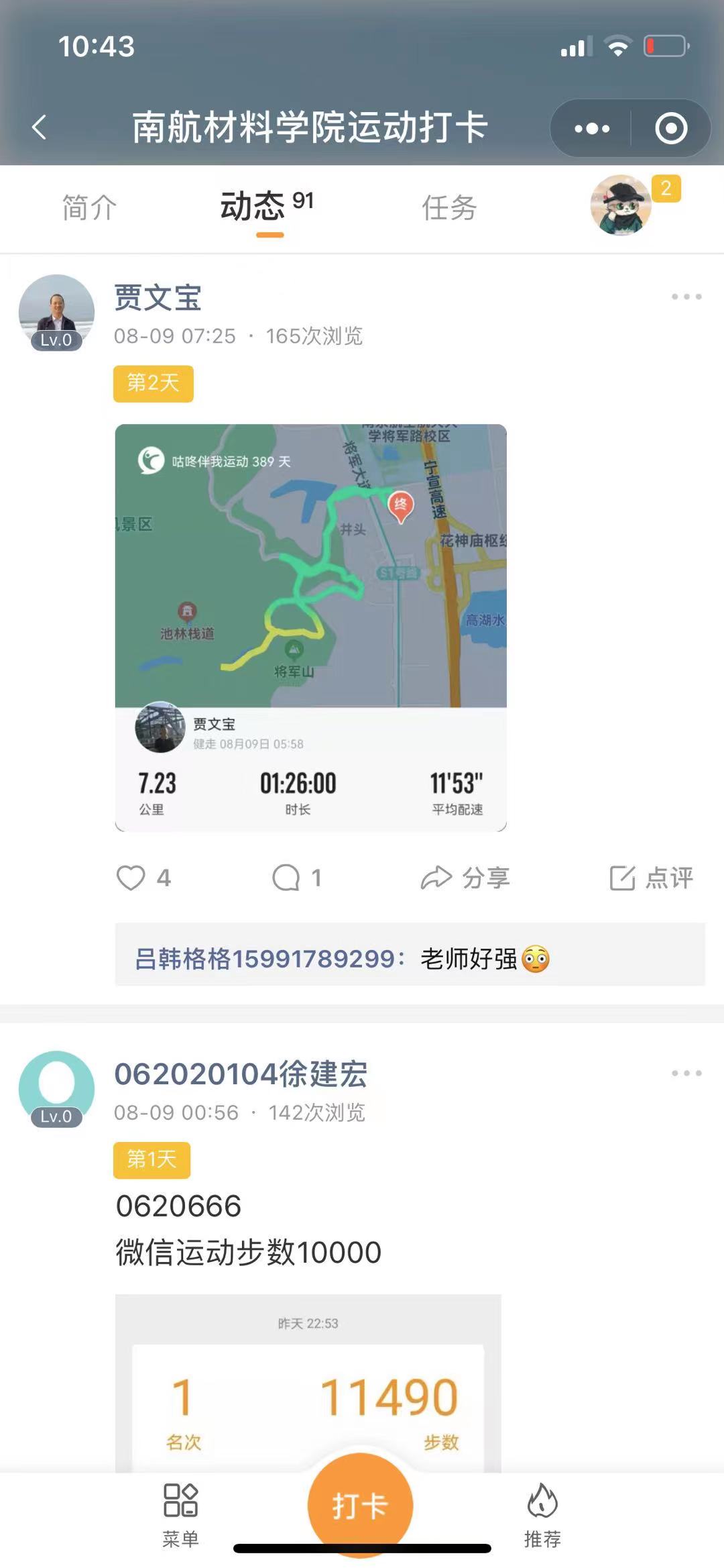 8月8日,我国奥运健儿以88枚奖牌总数的成绩结束了东京奥运会的征程,8月8日也是第十三个“全民健身日”,当天电子游戏试玩 面向全体师生开辟“南航材料学院运动打卡”圈,步数达到一万步、锻炼达到30分钟就可以进行打卡,活动当天圈内成员就达110人,参与打卡58人次,材院师生纷纷发布运动状态,有操场跑步的、有紫金山跑步的、有跟着keep软件锻炼的、有跳绳的、打篮球的、打羽毛球的……不管是在校还是居家,疫情期间都在积极参加体育锻炼。该活动长期有效,每月根据打卡次数进行排名,对前十名师生给予奖励,根据跑步图案也会评选最具创意奖、最有毅力奖、最长距离奖以及最快速度奖等!