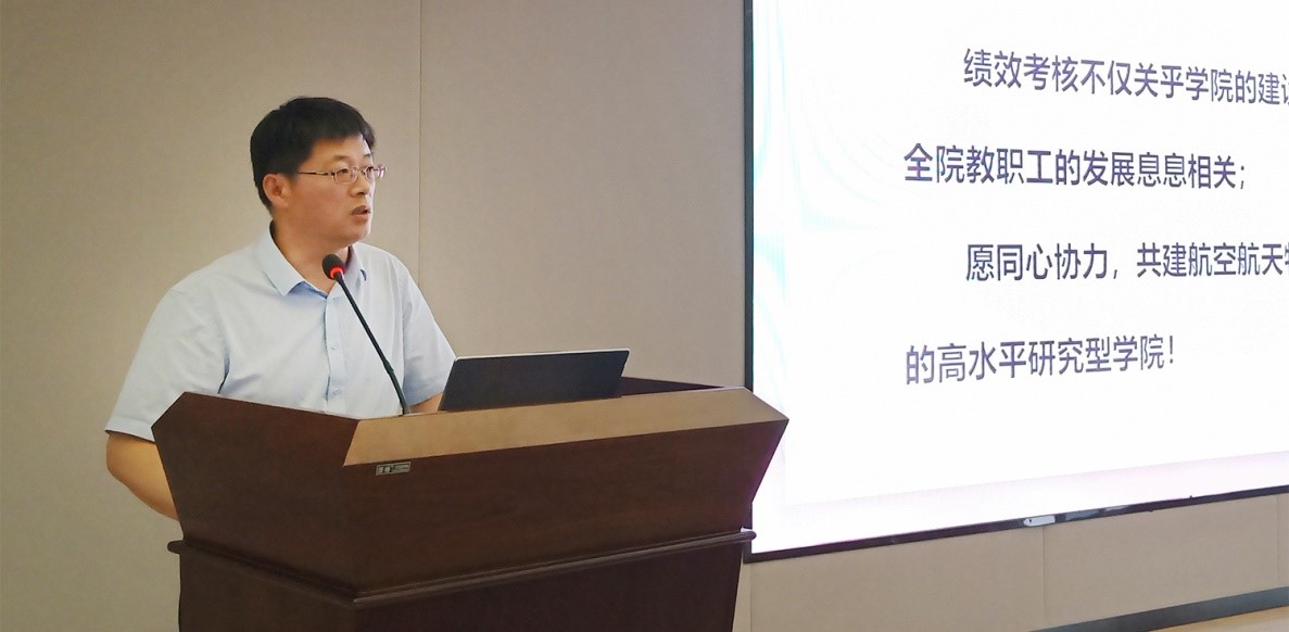 学院院长张校刚对2021年新修订的学院绩效考核实施方案进行详细解读,就方案的指导思想、考核原则、考核方式、考核结果、考核结果使用等介绍,重点对2020年度学院人才培养考核、专项考核情况进行数据分析、对标找差,为学院下半年的各项工作推进找准发力点。他强调绩效考核体系作为学校“双一流”建设的制度牵引,为学院的学科发展、人才培养、科学研究、国际合作提供了明确的指标依据,对激发学院内生动力和发展活力有重要作用。