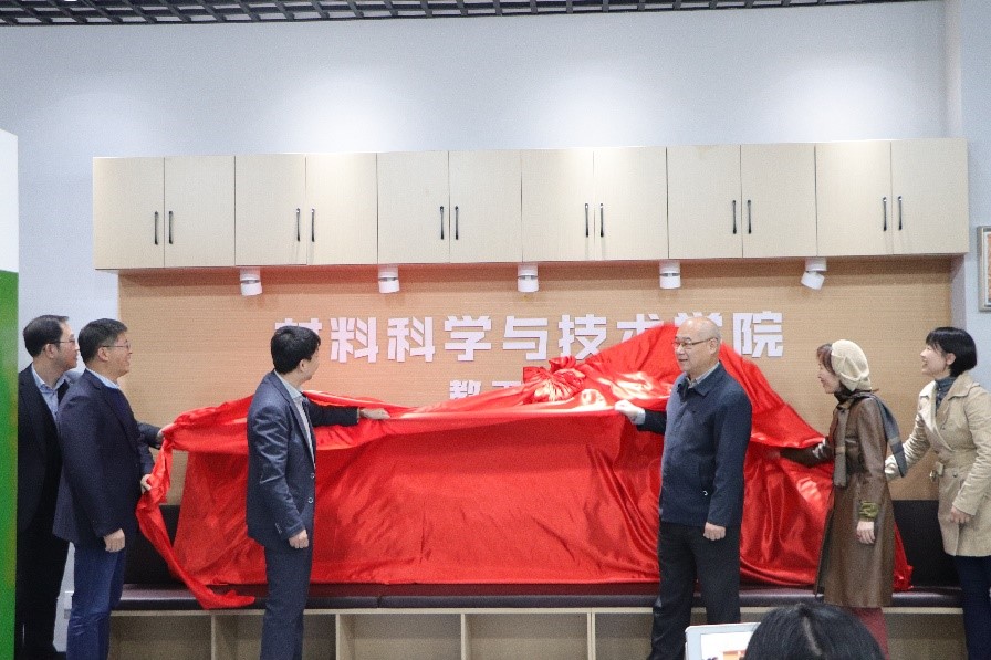 在热烈的掌声中,黄志球、孙占久、谢瑶、石勇、张校刚与许赞共同为“教工之家”揭幕。
