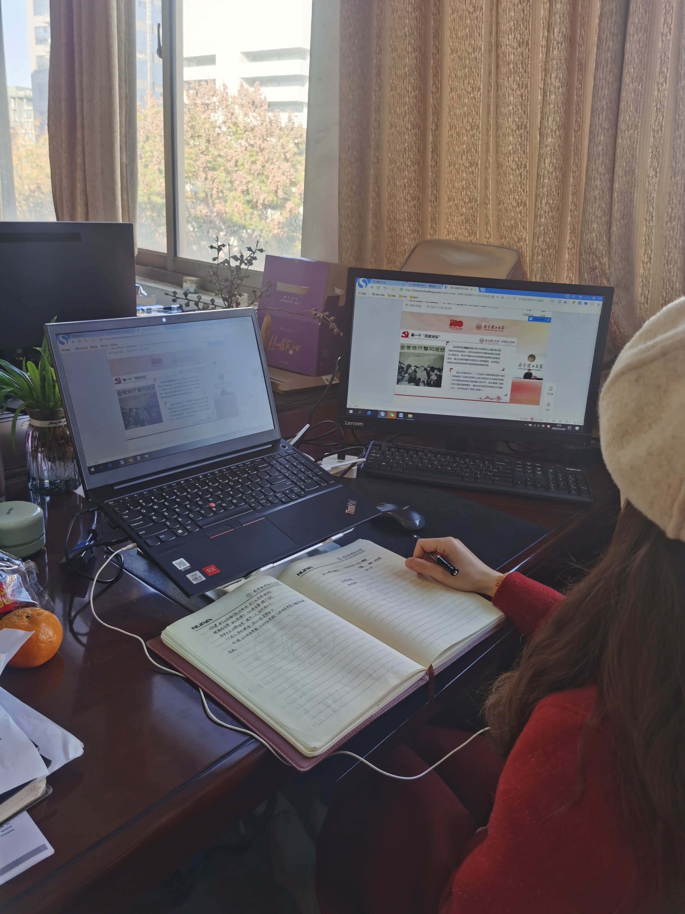 为深入学习党的十九届六中全会精神,响应国家号召,学院组织21级新生开展十九届六中全会精神分享会,引导广大青年学生关注国情党情。由各个班级的组织委员做大会精神的分享。辅导员刘召阳出席此次分享会,全体新生参与了学习。交流会上,同学们畅谈六中全会对青年的意义及启示,表示要从中汲取不懈奋斗的力量,继续在未来取得成功。 在会后,意犹未尽的同学们纷纷写下自己对过去百年建设的感悟和对未来发展的见解。在讨论中成长,在聆听中学习。