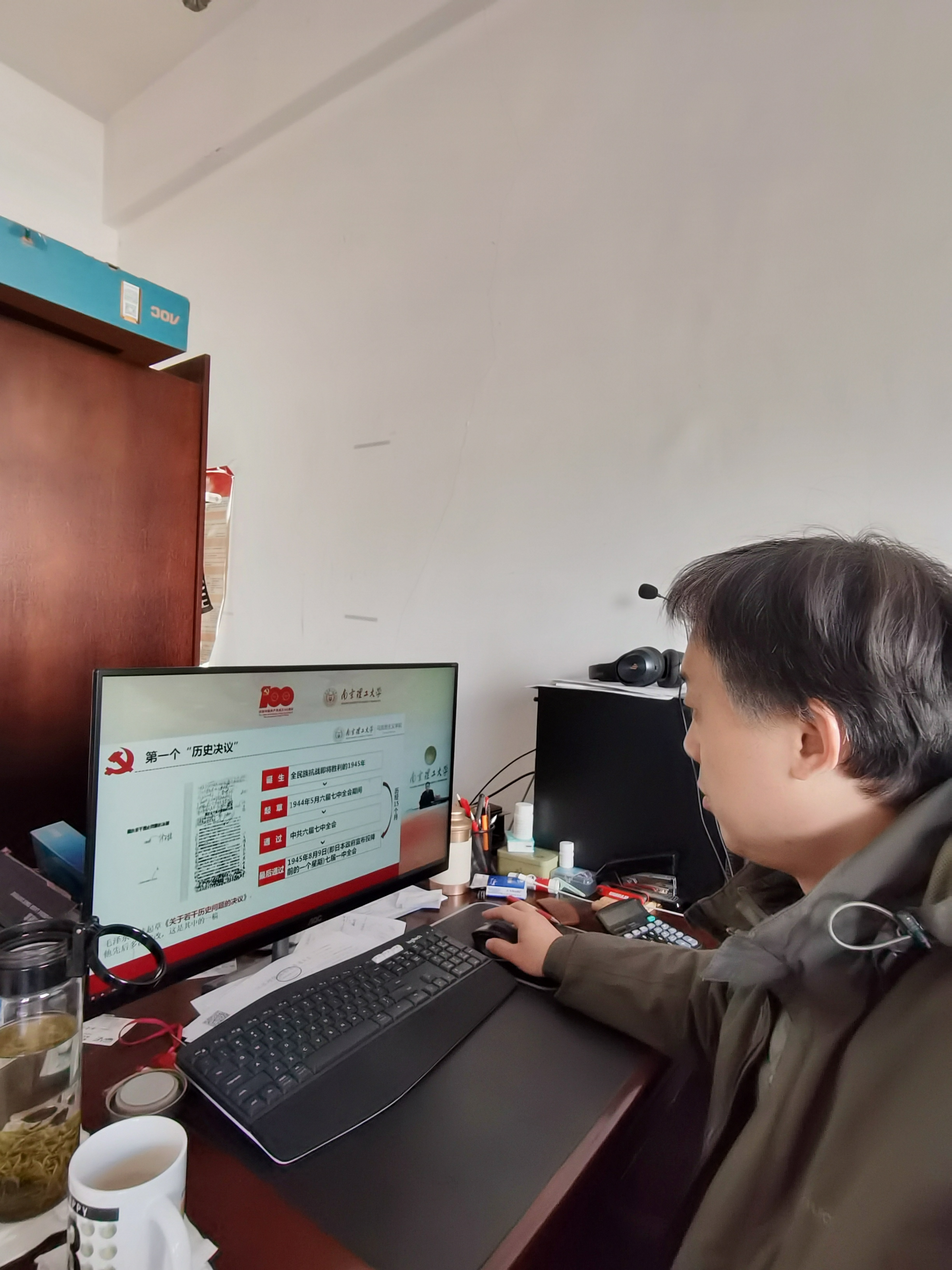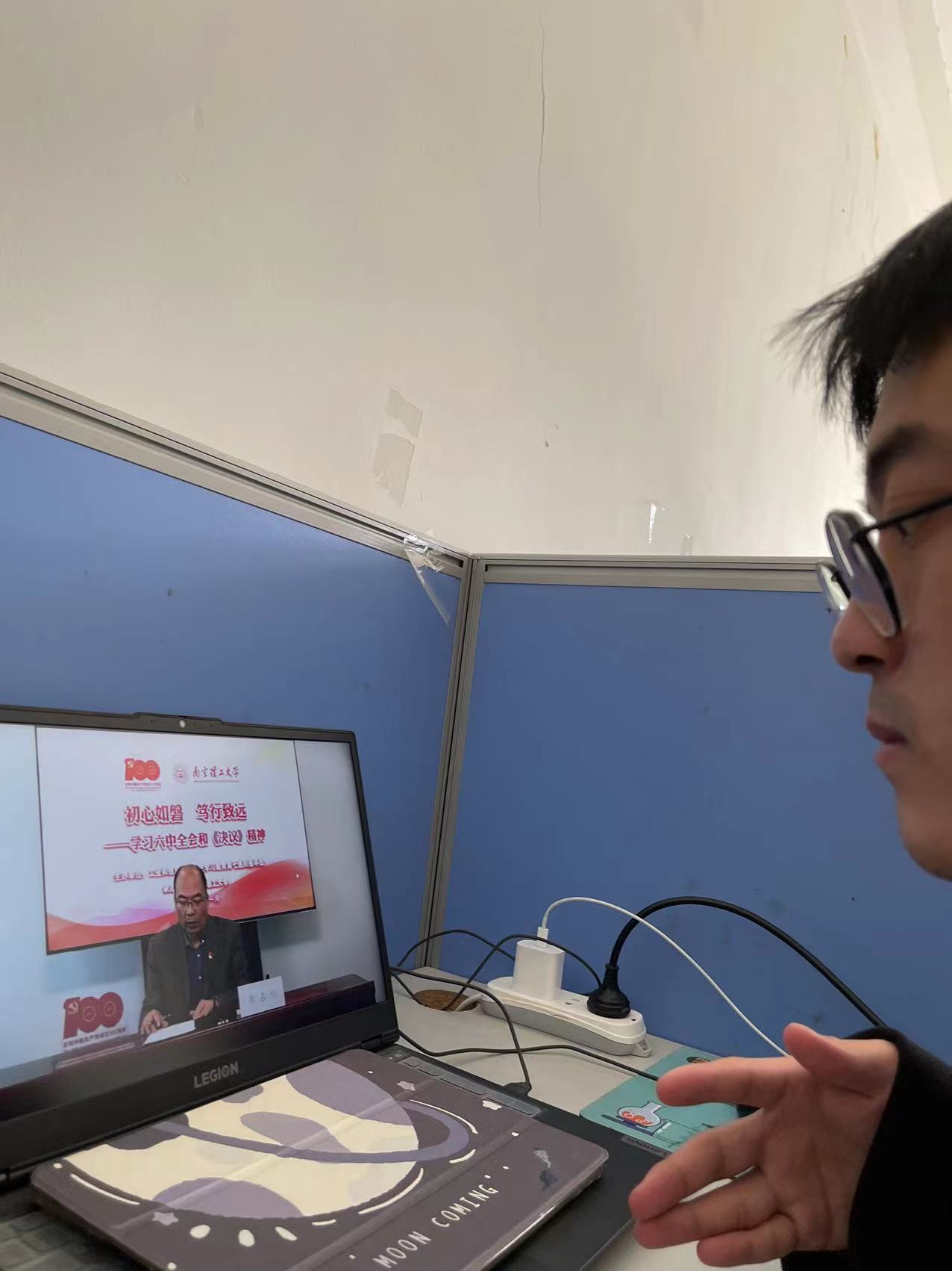 学院党委及师生各党支部密切关注党的十九届六中全会动态,11月24日分别以线上线下、集体及自学等学习方式收听收看专题党课《初心如磐 笃行致远——学习六中全会和<决议>精神》,学院党委书记石勇也受邀为教工党支部传达解读会议精神。大家纷纷表示,要将会议精神贯彻落实到实际工作中,埋头苦干、勇毅前行,自觉把学习成效转化为学习工作的动力;提高政治站位,强化责任担当,困难面前携起手来,凝聚合力共克时艰。