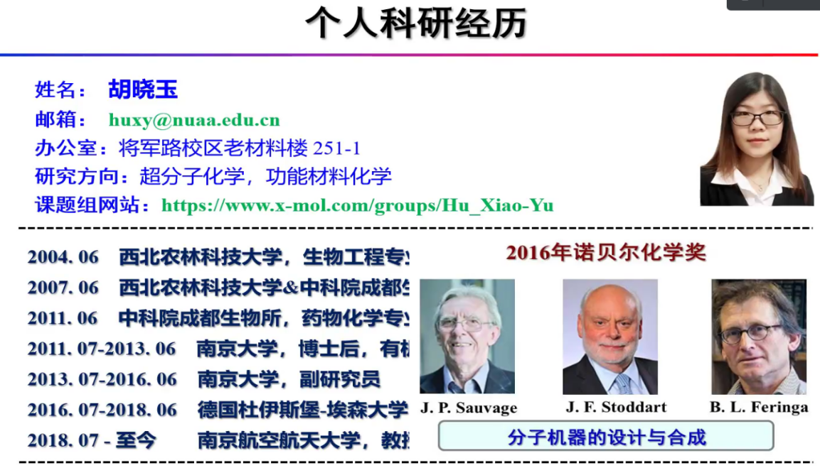首先,胡晓玉教授以一张17年前的老照片说起,分享了自己自本科以来的科研经历,讲述了自己如何从生物专业跨到化学专业,以自身经历告诉同学们跨专业没有那么可怕。以娓娓道来的方式提醒同学们要正视困难,积极应对,锤炼心理素质,过渡适应期。