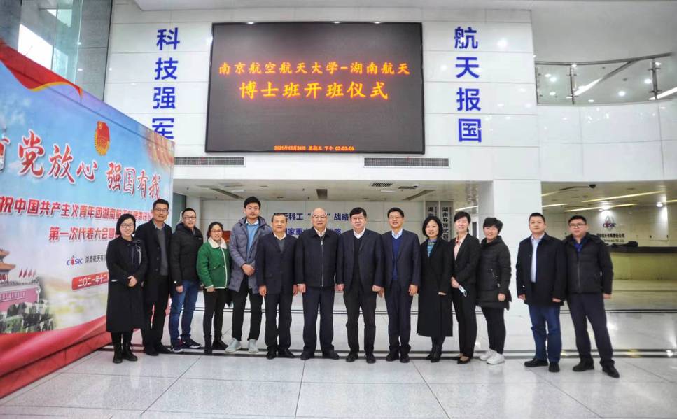 12月24日下午,南京航空航天大学-湖南航天2021级博士班开班仪式在湖南航天举行。南京航空航天大学(以下简称南航)党委常委、副校长黄志球,电子游戏试玩 院长张校刚,湖南航天党委副书记、总经理张镝,相关部门负责人,以及电子游戏试玩 挂职湖南航天新材料研究院副院长申来法,博士班学员代表参加了本次仪式。仪式由湖南航天党委副书记、副总经理杨运斌主持。