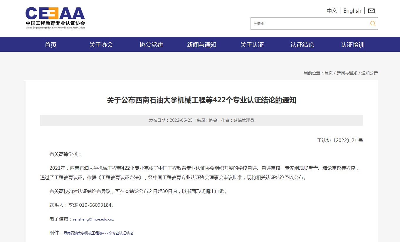 近日,中国工程教育专业认证协会正式公布了2021年工程教育专业认证结论,电子游戏试玩 核工程与核技术专业顺利通过本次认证,有效期为6年(2022年1月至2027年12月)。这是继材料科学与工程之后,学院第二个通过认证的专业。