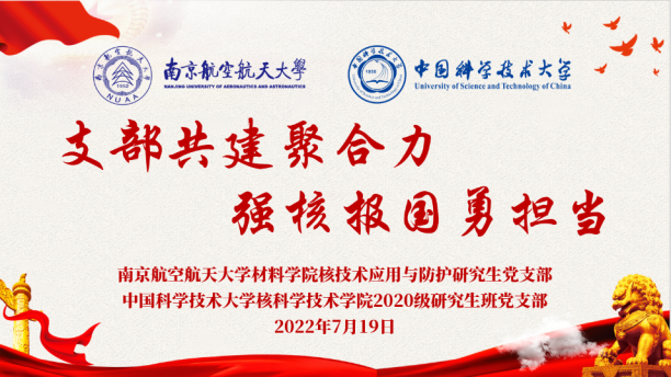 核技术应用与防护研究生党支部与中国科学技术大学核科学技术学院2020级研究生班党支部相聚云端,举办“支部共建聚合力,强核报国勇担当”联学共建。中科大等离子体物理与聚变工程系系总支书记蔡辉山、南航核科学与技术系教工党支部纪检委员耿长冉、两支部全体党员参与活动。