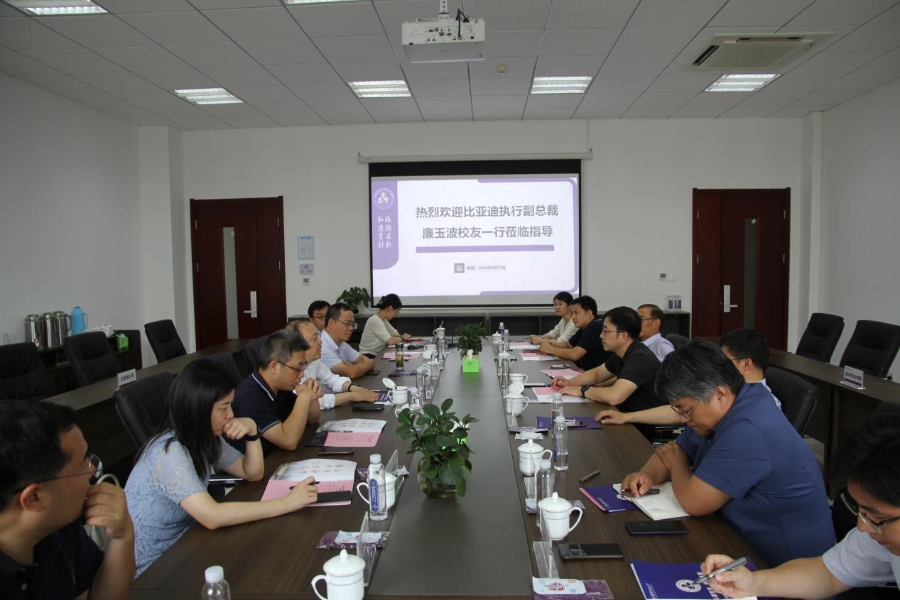 8月17日下午,比亚迪集团执行副总裁、杰出工程师廉玉波校友一行来访学院交流指导。学院党委书记石勇、院长张校刚,院领导班子成员、部分教师代表参加了本次交流会。会议由学院党委书记石勇主持。