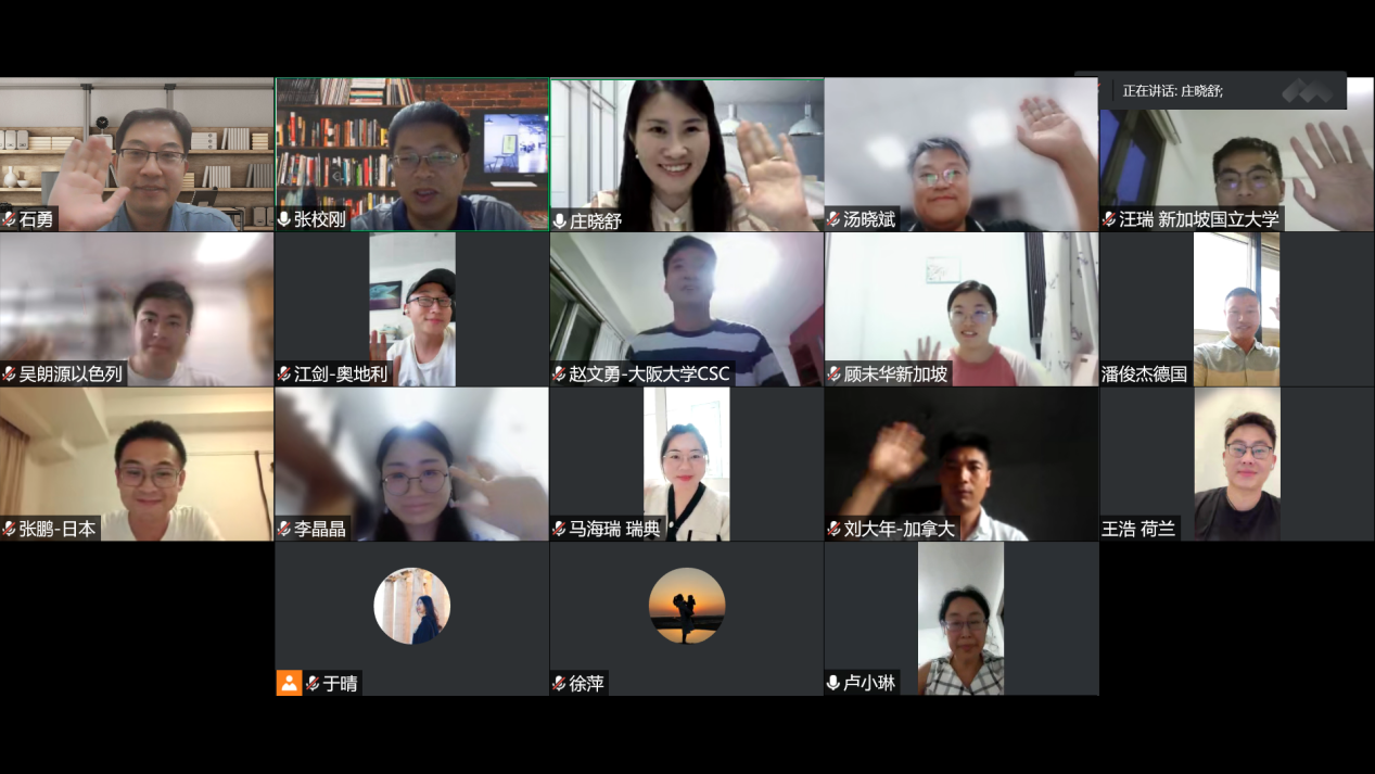 视频连线中,院长张校刚首先代表学院向海外学子们表达节日的关心和问候,介绍了学校和学院近期发展情况。11名海外学子分别介绍了个人生活学习情况、当地疫情防控措施和个人身体健康状况,结合海外经历对学院相关工作提出了意见和建议,感谢学院全方位的关怀和指导,并祝老师们中秋节、教师节快乐。
