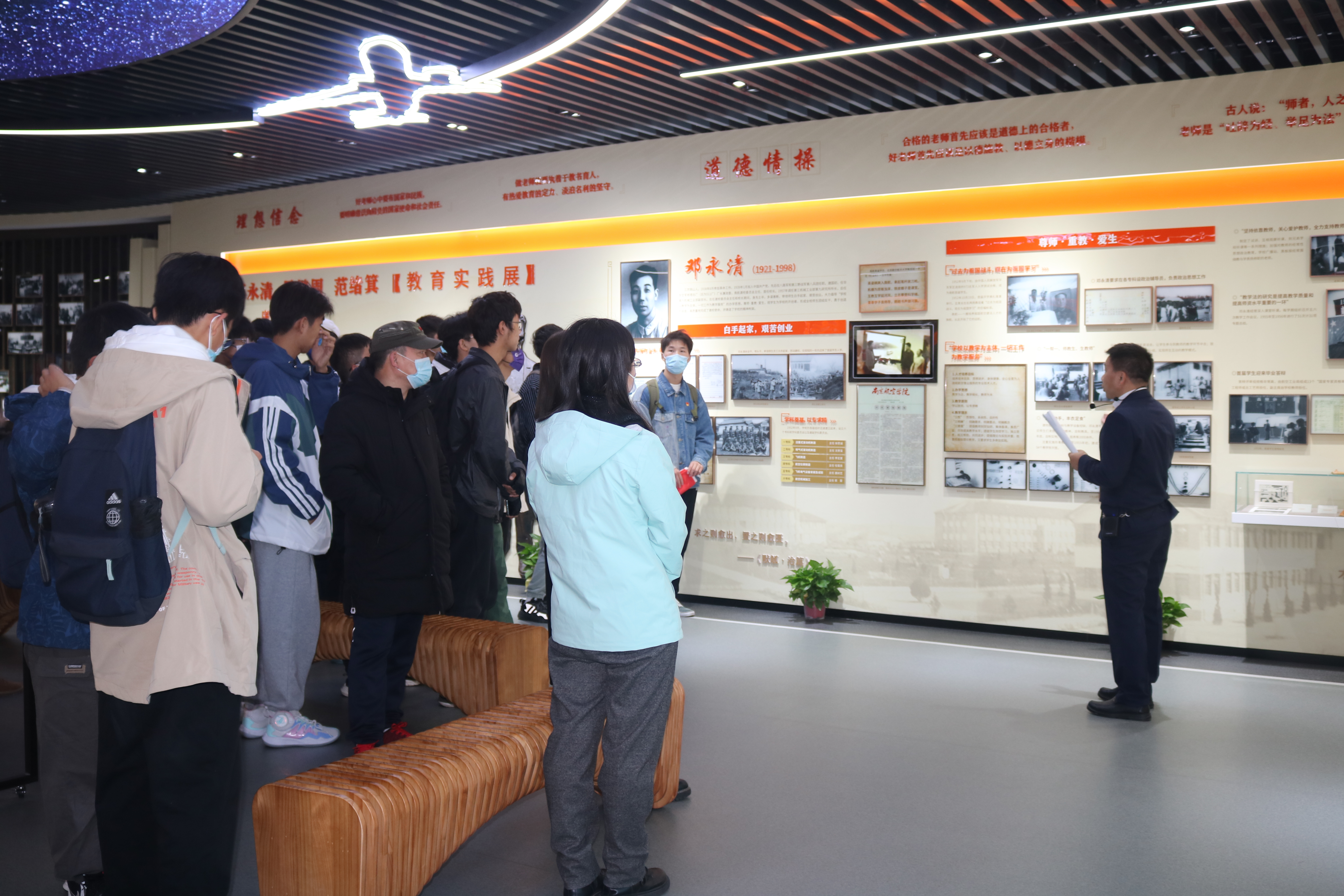 在立德树人馆中,讲解员依次介绍了三位建校元勋邓永清、吴继周、范绪箕的生平和主要贡献,带领大家学习了建校初期南航建设者们的教育理念和典型事例。循着一件件实物,一张张图片,大家深刻体会老一辈南航人为国为民的奉献精神和爱国之情,感受到不同发展时期教书育人楷模及先进教育工作者的教育理念和崇高精神。