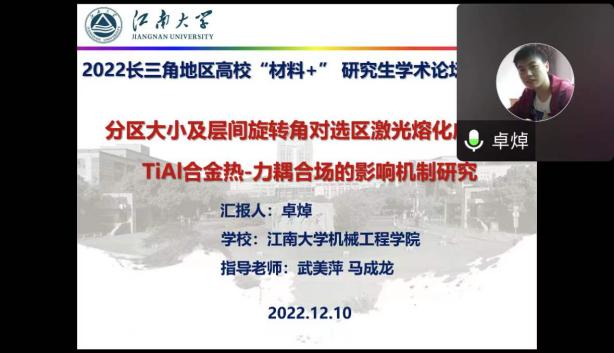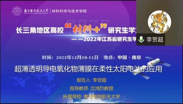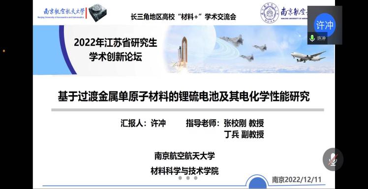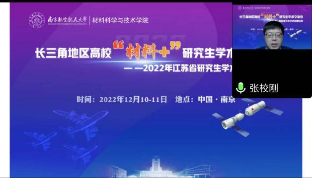 12月10-11日,由江苏省教育厅工学 3 类教指委主办,南航电子游戏试玩 承办的长三角地区高校“材料+”研究生学术交流会暨2022年江苏省研究生学术创新论坛活动顺利举办。来自北京大学、浙江大学、北京航空航天大学、上海理工大学、东南大学、西北工业大学、南京理工大学、中国科学院等十几所高校的40余名学生通过线上的形式进行学术成果交流与分享,百余名师生聆听报告并参加讨论。