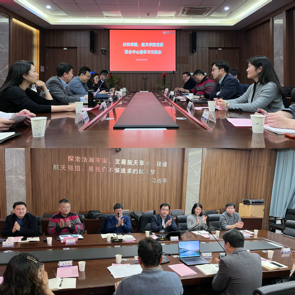 随后,双方党委中心组成员围绕学习贯彻党的二十大精神,大力弘扬航天精神进行了广泛的交流与研讨,并就加强航天类与材料类学科专业交叉融合进行了充分沟通,在双方实验室共享机制建立等方面进行了深入交流。与会领导纷纷表示,双方要携手推进学院发展,共同助力南航“双一流”建设,肩负起“为党育英才、为国铸重器”的使命责任,踔厉奋发,勇毅前行,奋力为航天强国贡献力量与智慧。