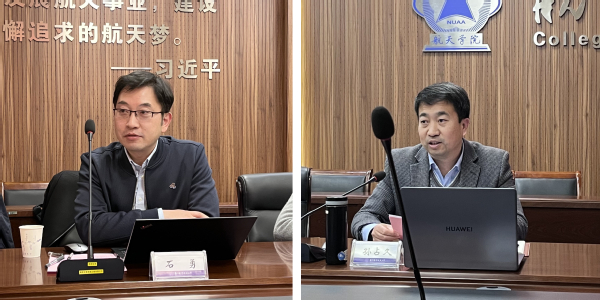 最后,石勇和孙占久作总结发言。石勇强调,材料学院与航天学院具有很大的合作空间,在助力南航“双一流”发展中完全可以形成合力,希望未来双方学院可以联合做出“大文章”。孙占久强调,双方学院在今后要不断发挥优势互补,落实各领域深度合作,要继续加强学习航天精神,继续学习贯彻党的二十大精神,在校内要与兄弟学院进行联学交流,在校外要积极与航天类企业进行联系,并开展联学共建。