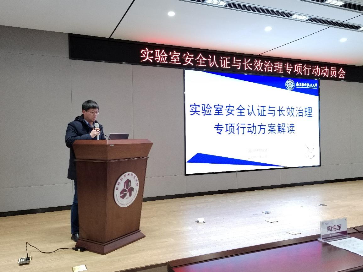 新学期、新起点、新目标、新征程,为切实增强学院实验室安全管理能力和水平,保障学院安全稳定和师生生命安全,上好实验室安全第一课,2月13日下午,在将军路校区东区材料楼B501会议室,材料学院举办实验室安全认证与长效治理专项行动动员会,并邀请国资处阎志军副处长一行来电子游戏试玩 对专项行动方案进行解读,学院党委书记石勇,院长张校刚,副院长汤晓斌、陶海军,各系分管安全的副主任,全体实验室安全责任人参加了本次动员会,会议由汤晓斌主持。