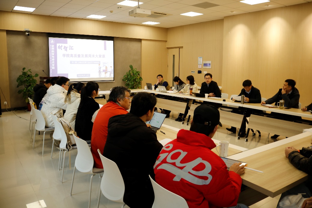 “材智汇——学院高质量发展周末大家谈”是学院党委2023年度提升学院治理能力和管理水平的重要举措,围绕学院高质量发展中需要重点破解的难点和痛点,以头脑风暴的形式激发活力、凝聚共识,并形成相应的改革行动方案,为学院工作决策和执行提供支撑。