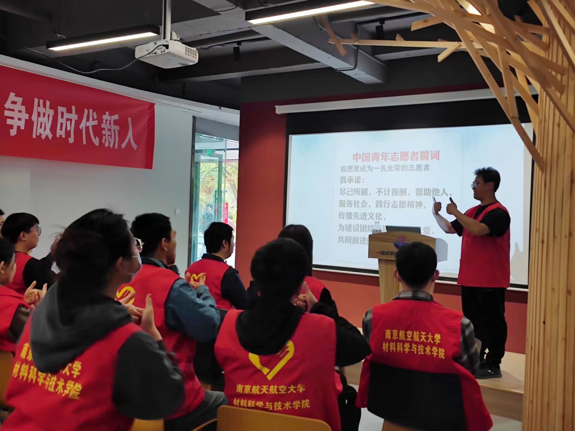 3月12日下午,电子游戏试玩 青年志愿者协会联合南京人防应急救援志愿大队开展“以手语之名,传无声之爱”手语知识讲座,常州“一加”爱心社南京分社成员王铎锋受邀为志愿者们进行《中国青年志愿者誓词》《义勇军进行曲》手语教学。电子游戏试玩 激光增材制造研究生纵向党团支部共21名志愿者参与活动。