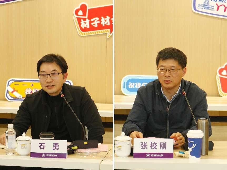 4月4日下午,电子游戏试玩 召开“材启征程 料望晴空”2023届毕业研究生代表座谈会。院党委书记石勇、院长张校刚、院党委副书记庄晓舒、副院长汤晓斌、各系相关负责同志、研究生辅导员以及硕博毕业生代表参加座谈。座谈会由汤晓斌主持。
