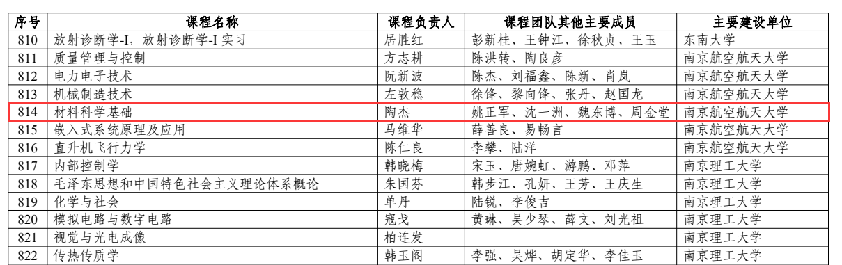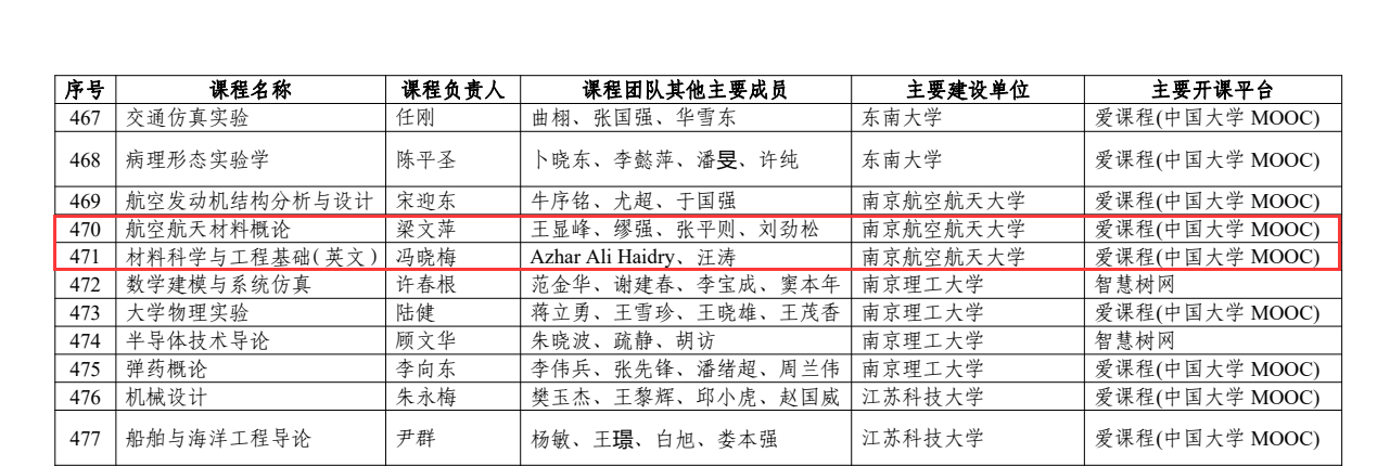 日前,教育部发布《关于第二批国家级一流本科课程认定结果的公示》,电子游戏试玩 有3门课程入选,分别是陶杰《材料科学基础》,梁文萍《航空航天材料概论》,冯晓梅《材料科学与工程基础(英文)》。