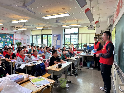 活动中,柔性成形技术与装备研究生纵向党支部的党员志愿者们走进学生课堂,为学生带来了一堂生动有趣的科普课——《探秘奇妙世界-材料科技与生活》。志愿者们用通俗易懂的语言讲解基本材料的属性等知识,并进行相关互动提问,使学生对科普知识了解更加深入。讲解结束后,学生们自由组队进行材料、航空航天拼图游戏,以增强了学生对材料、航空航天知识的向往,激发其对空天的热爱。