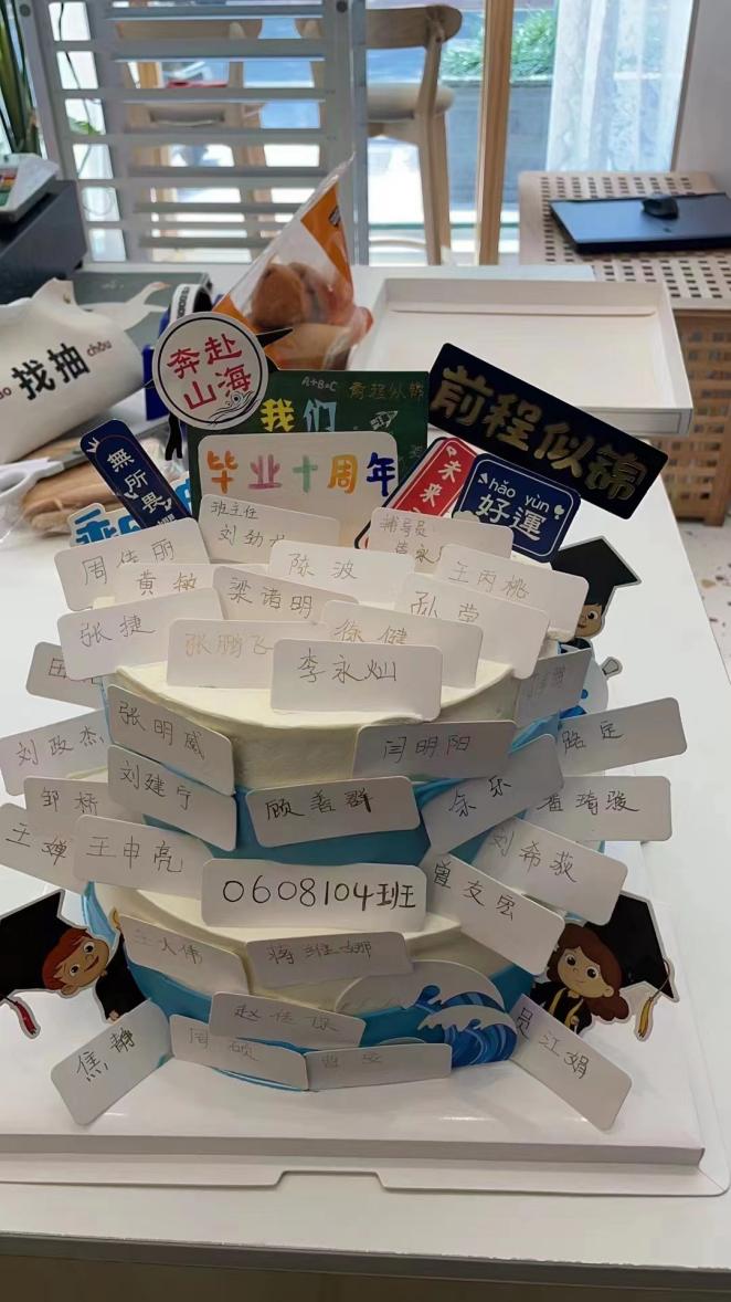 下午两点,校友们来到曾经的教室开展主题为“毕业十年后再相聚”的主题班会。观看了讲述曾经在校生活的短视频,共同参与了一场考验对彼此默契的游戏,并在一片欢声笑语中品尝蛋糕并颁发“最高学历奖”“生孩子最多奖”“远道而来奖”“青春暂离奖”等10项趣味奖项。在轻松愉悦的气氛里,校友们畅所欲言,抒发了自己对校园生活深深的怀念之情。