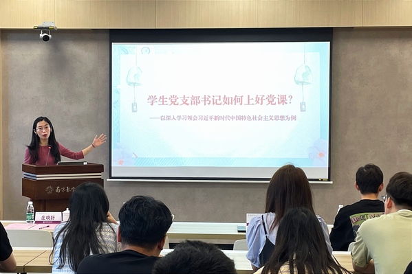 开班仪式结束后,徐坤作“学生党支部书记如何上好党课——以学习领悟习近平新时代中国特色社会主义思想为例”主题报告。她结合自身授课经验,深入浅出地点明了党课备课的六大原则,从受众分析、准确选题、巧用案例和言形说理四个方面讲解了党课备课的基本步骤,并展示了一堂示范课,令党员骨干们受益匪浅。