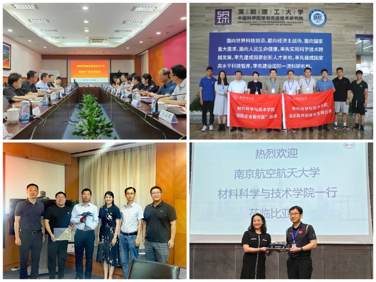 学院先后前往中广核集团研究院有限公司、工程有限公司、大亚湾核电运营公司、苏州热工研究院深圳分公司,比亚迪股份有限公司,中国科学院深圳先进技术研究院,哈尔滨工业大学(深圳)访企拓岗、调研交流。中广核集团人力资源部人事处处长唐朝波、苏州热工研究院人力资源部主任梅林,我校97级校友、比亚迪总裁办接待中心总监杨蕾,哈工大(深圳)材料科学与工程学院执行院长李明雨、党委书记徐成彦等热情接待了学院一行。