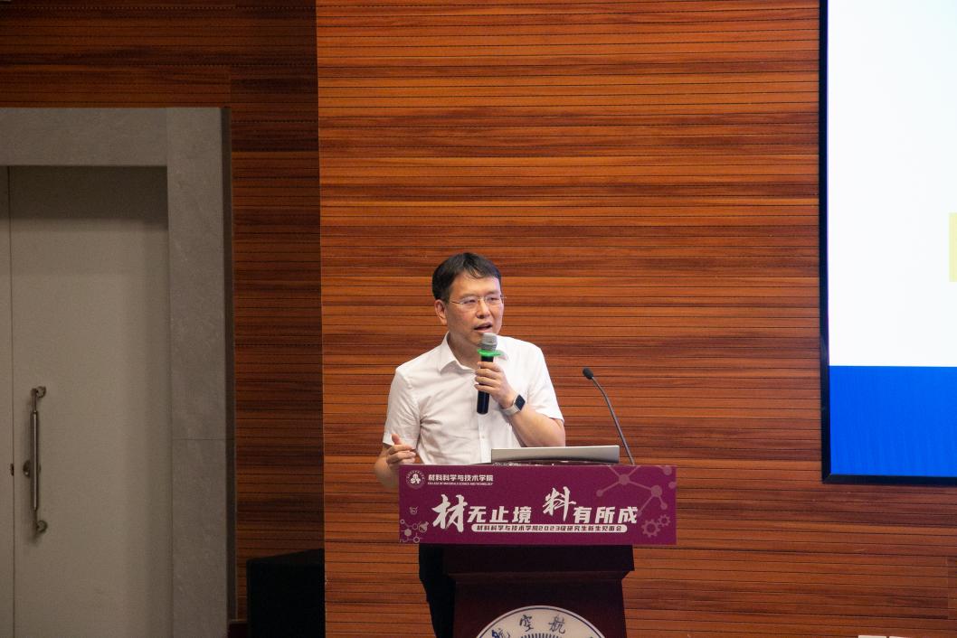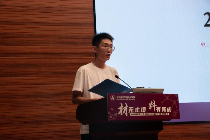 2023级直博生庄智淇作为新生代表发言。他表示,作为南航材料学子,要善学笃行、勇于求索,在研途新征程中勇攀科研高峰,努力担负起“材料强国”的时代使命。