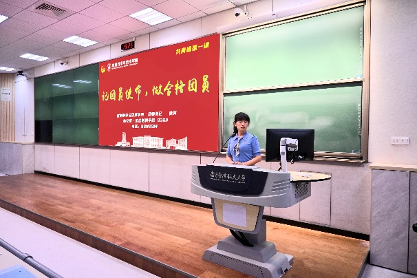 徐萍从“什么是团”切入,叙述共青团的性质与使命,鼓励新生用实际行动践行“请党放心,强国有我”的青春誓言。随后,从“以思想引领洗涤灵魂”“以组织建设强健根骨”“以科技创新放飞梦想”“以社会实践开拓眼界”“以志愿服务回馈社会”“以校园文化展示风采”六大方面介绍共青团为广大青年提供的德智体美劳全面发展平台。最后,以“总书记的青年观”为题讲授主题团课,希望所有新生团员“点亮青春理想,激昂奋斗旋律,澎湃创新动力,淬炼斗争精神”,做有理想、敢担当、能吃苦、肯奋斗的合格团员。