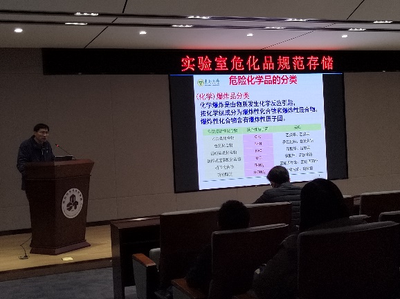 12月13日下午,电子游戏试玩 特别邀请到东南大学实验室与设备管理处王继刚副处长就实验室危化品的规范存储和使用进行专题讲座。本次讲座由学院党委书记石勇主持,全院100余名师生参加了此次培训活动。