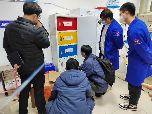 会后,学院组织与会人员现场参观了JD10-B504实验室。王继刚副处长对实验室危化品的存储情况,进行详细的现场指导。
